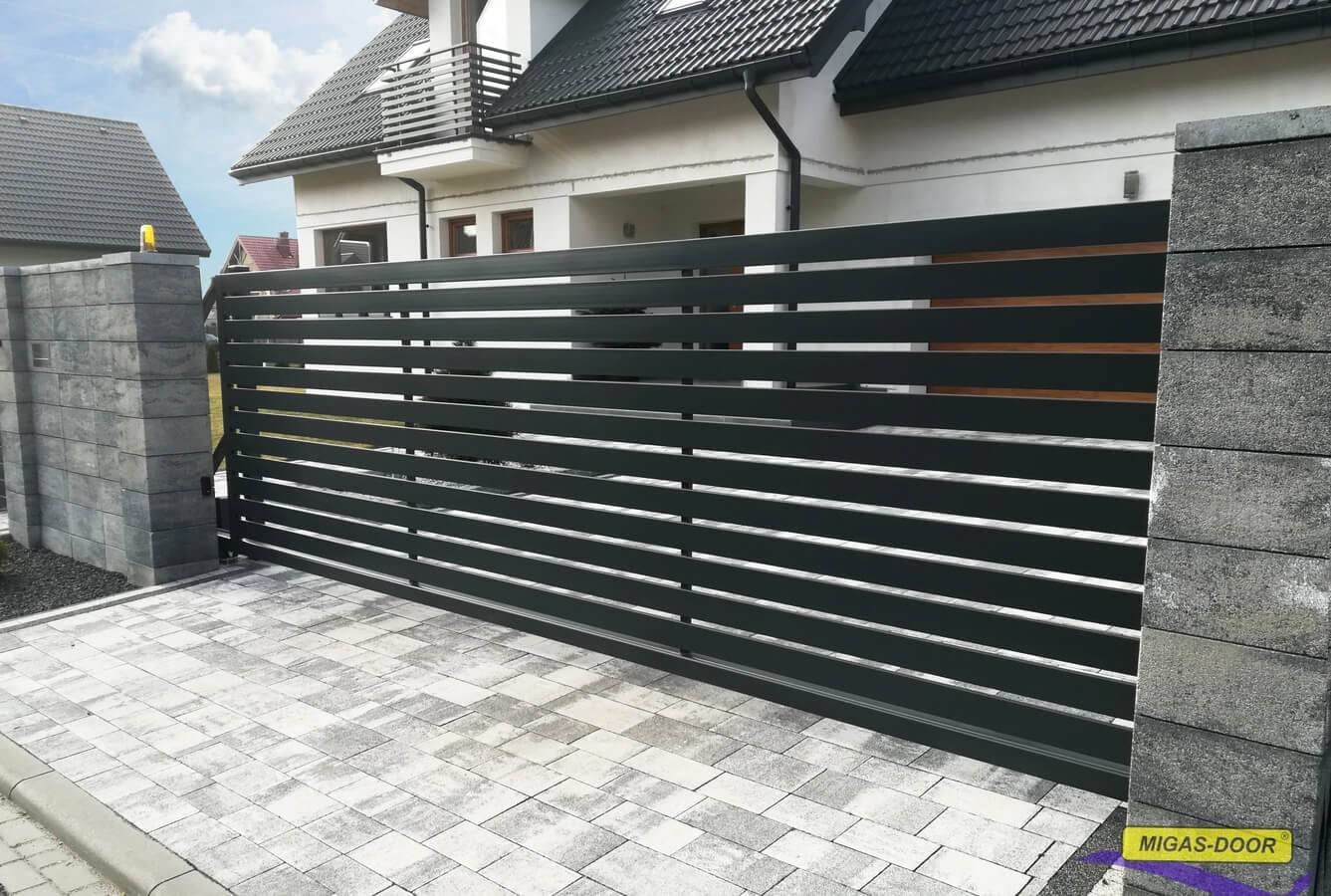 Bramy przesuwne ogrodzeniowe najczęściej składają się z jednego skrzydła, które przesuwa się wzdłuż linii ogrodzenia. Inwestorzy cenią ten rodzaj bramy ogrodzeniowej za to, że podczas pracy skrzydło nie zajmuje miejsca w świetle wjazdu. Samonośne bramy przesuwne oferowane przez Migas-Door poruszają się nad podłożem, dzięki czemu niezawodnie działają w każdych warunkach atmosferycznych. Na życzenie inwestorów wykonujemy także nietypowe bramy przesuwne dwuskrzydłowe o dowolnej asymetrii skrzydeł.
