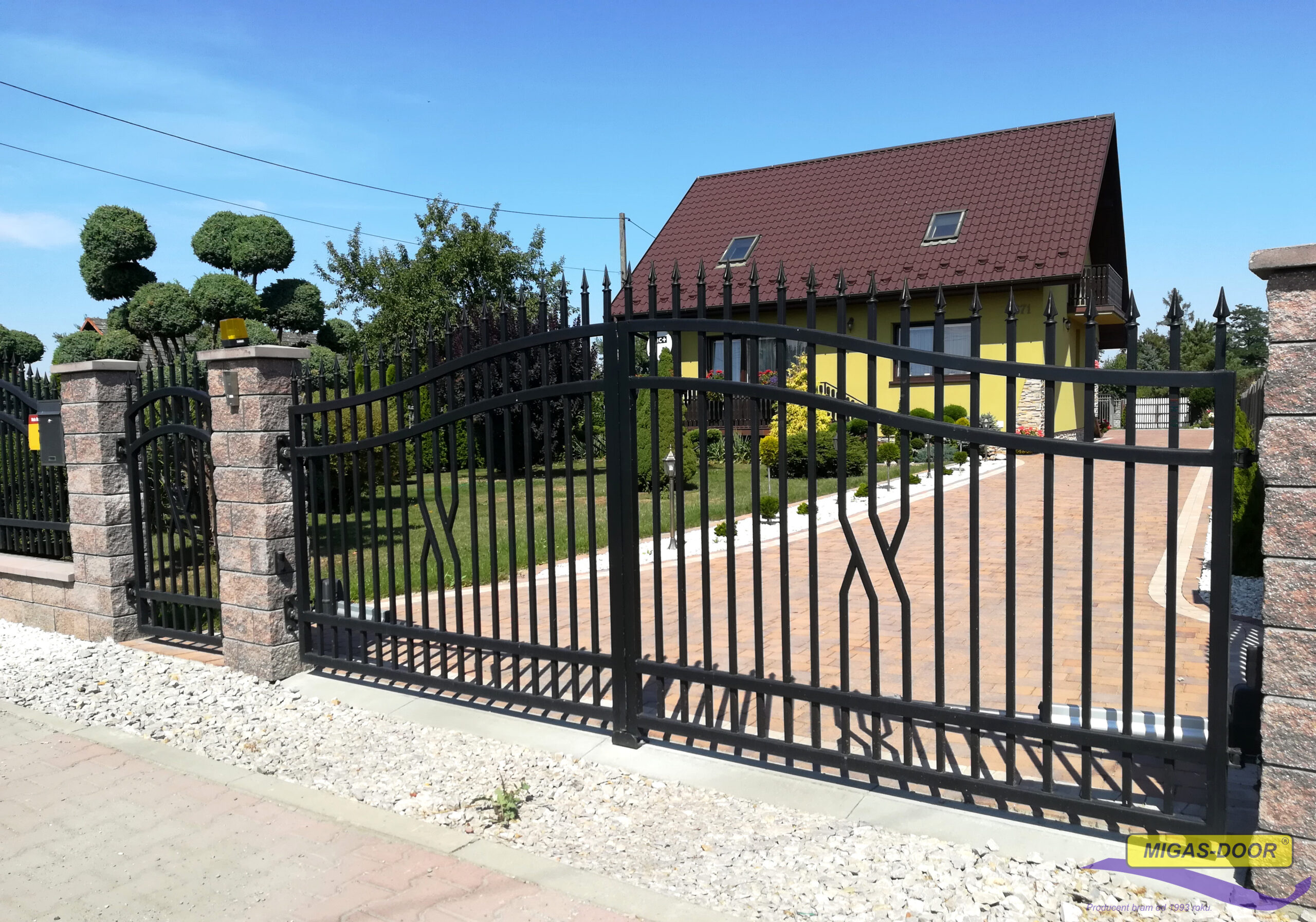 Bramy dwuskrzydłowe MIGAS-DOOR są solidnie wykonane, a do ich produkcji wykorzystuje się materiały najwyższej jakości. Nasze realizacje cechują się estetycznym wyglądem zgodnym ze stylistyką wybraną przez klienta. Bramy stanowią doskonałą barierę między posesją a światem zewnętrznym.