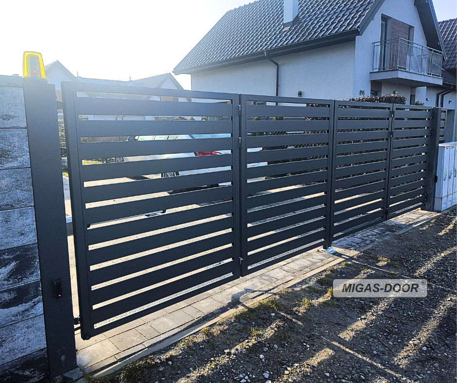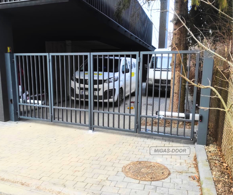 To rozwiązanie znajdzie zastosowanie wszędzie tam, gdzie brakuje przestrzeni na pełne rozwarcie skrzydeł bramy. Brama o szerokości 4 metrów, otwierając się do wewnątrz posesji, potrzebuje tylko 1 metr na złożenie skrzydeł.