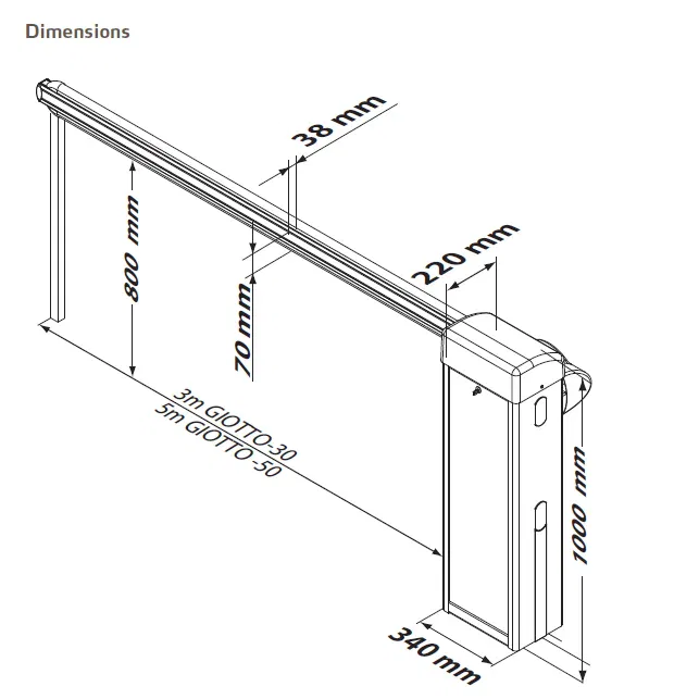 Szlabany serii GIOTTO przeznaczone są do wjazdów o szerokości od 3 do 6 m. Kolor jednostki szary (RAL 7015) dostosowany jest do najnowszych trendów urbanistycznych, dzięki czemu nie zakłóca spójności koncepcji projektowych.