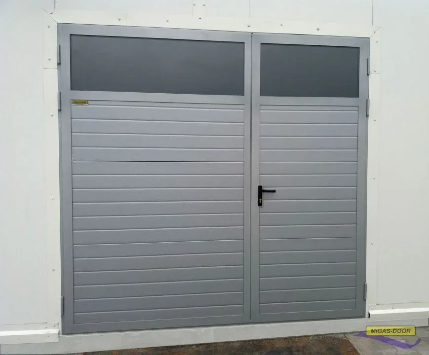 MIGAS-DOOR double-leaf garage door can be equipped with a wicket door fitted. The advantage of this solution is that you do not have to open the whole garage door when you want to enter or leave the area protected by the double-leaf door. This way you also avoid heat loss inside and make foot traffic simpler.
