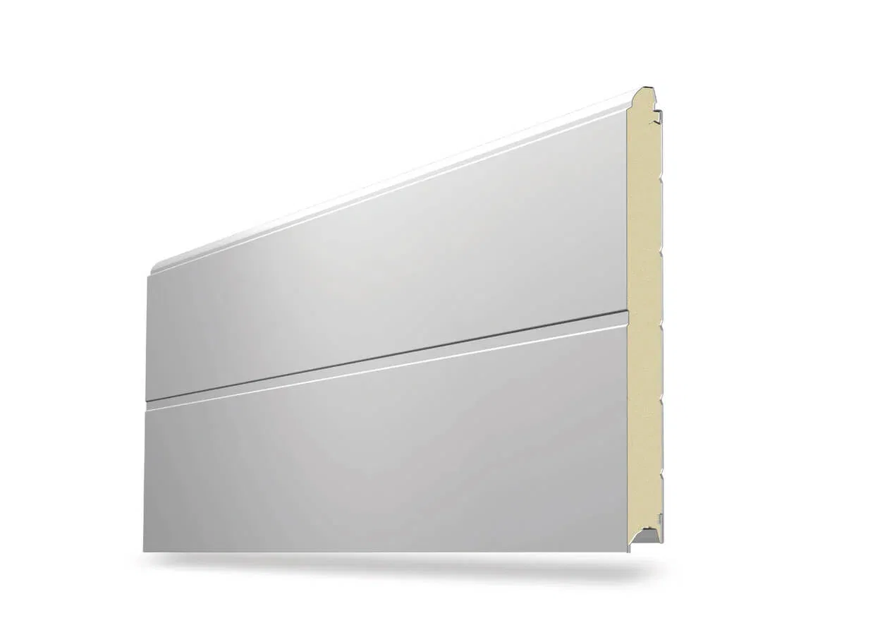 Depending on the needs, industrial double-leaf doors are manufactured in two versions, either insulated or uninsulated, of T8 trapezoidal sheet metal or of galvanised steel sheet panels filled with 40 mm polyurethane foam filling. The thermal transmittance coefficient (U value) for the panel is Uk=0.6 W/m²K. Double-leaf doors can be manufactured in any size and with various options of additional accessories: