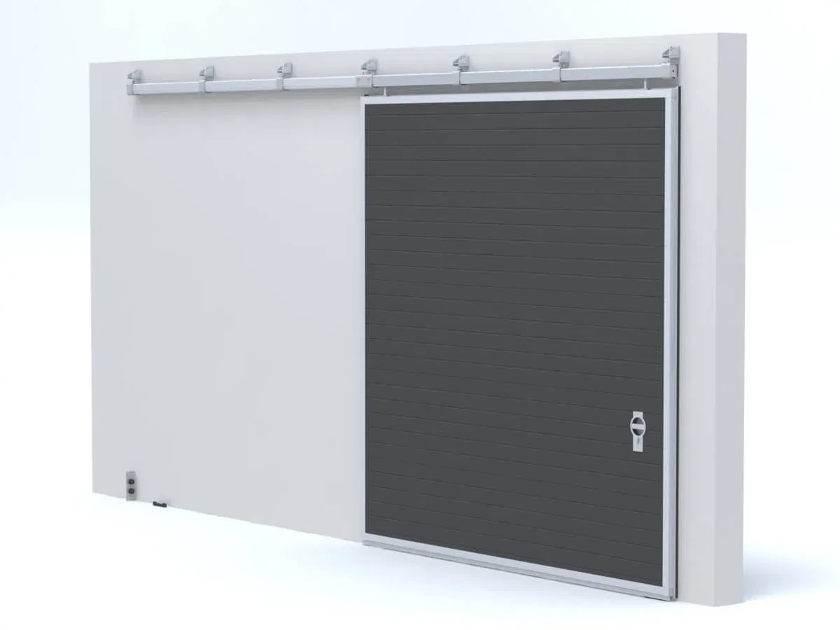 Sliding garage doors are the perfect solution for places where there is limited space for installations. These doors can be made in a single-leaf version (a leaf sliding along one of the walls of the building) or two-leaf version (leaves sliding along two sides of the aperture, either symmetrical or asymmetrical). In practice, this means freedom to choose different widths of the door leaves according to the requirements and the space available at the aperture. Depending on the needs, sliding doors can be installed both outside and inside the building.