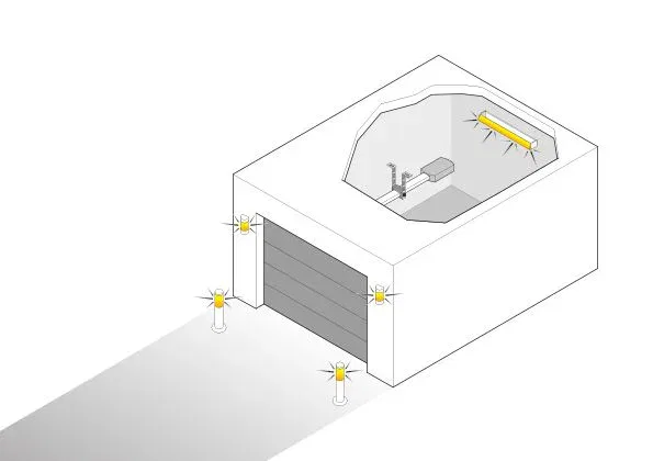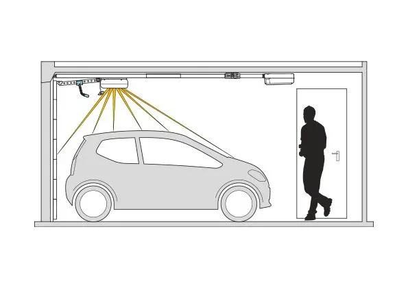 Czujnik podczerwieni wykrywający niewidoczne promieniowanie cieplne poruszającego się ciała (człowieka/zwierzęcia) i reagujący na takie promieniowanie. Bezpieczne poruszanie się w garażu zapewnia załączające się automatycznie po wejściu oświetlenie napędu (oświetlenie dodatkowe/przekaźnik).